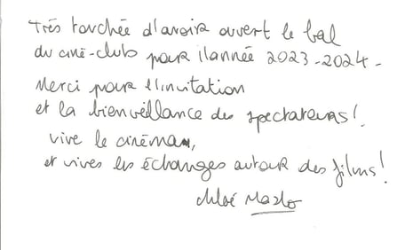 Sensible, humaniste, baroque, puissamment poétique, « Sous le ciel d’Alice » est une œuvre vraiment originale dans le cinéma contemporain . Le film aura mérité d’être découvert et apprécié par les cinéphiles de Brémontier. Il faisait grand beau sous le ciel de Chloé et dans les cœurs.